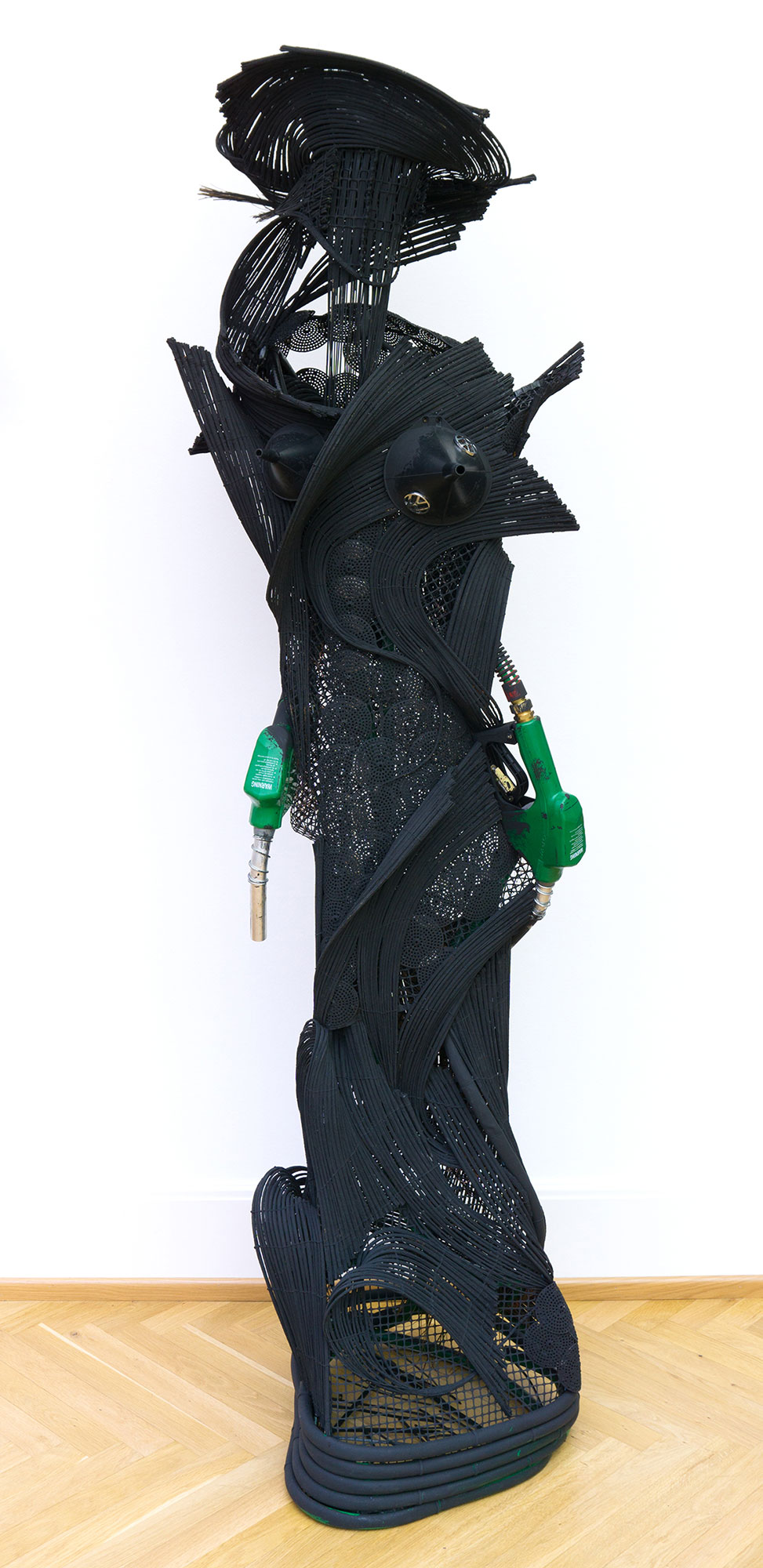 - Medium: Palm spines, oil funnels, gas pumps, perforated metal, hardware cloth, wire and black paint