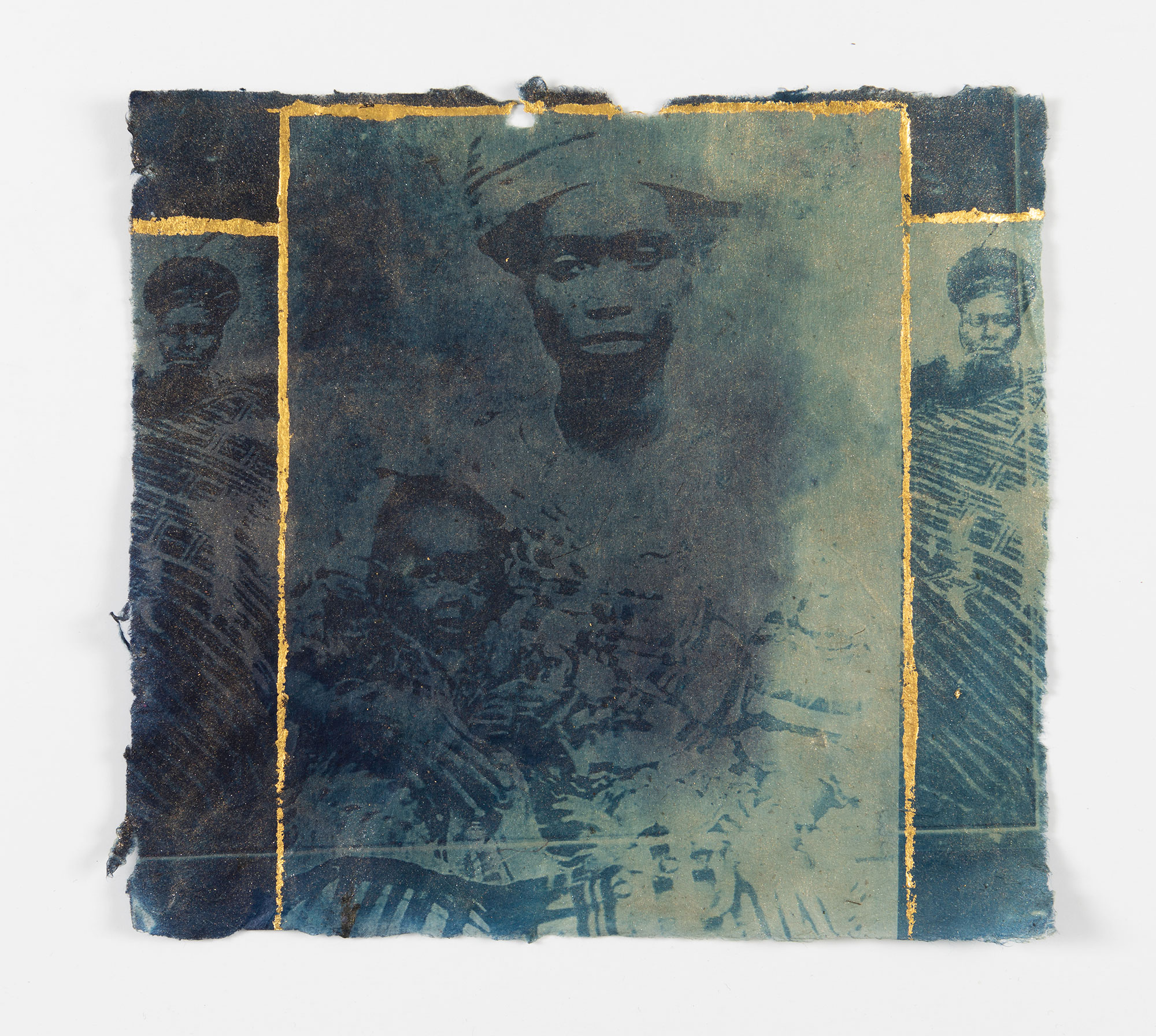 Cyanotype and 24 carat yellow gold leaf on Nepalese Lokta paper