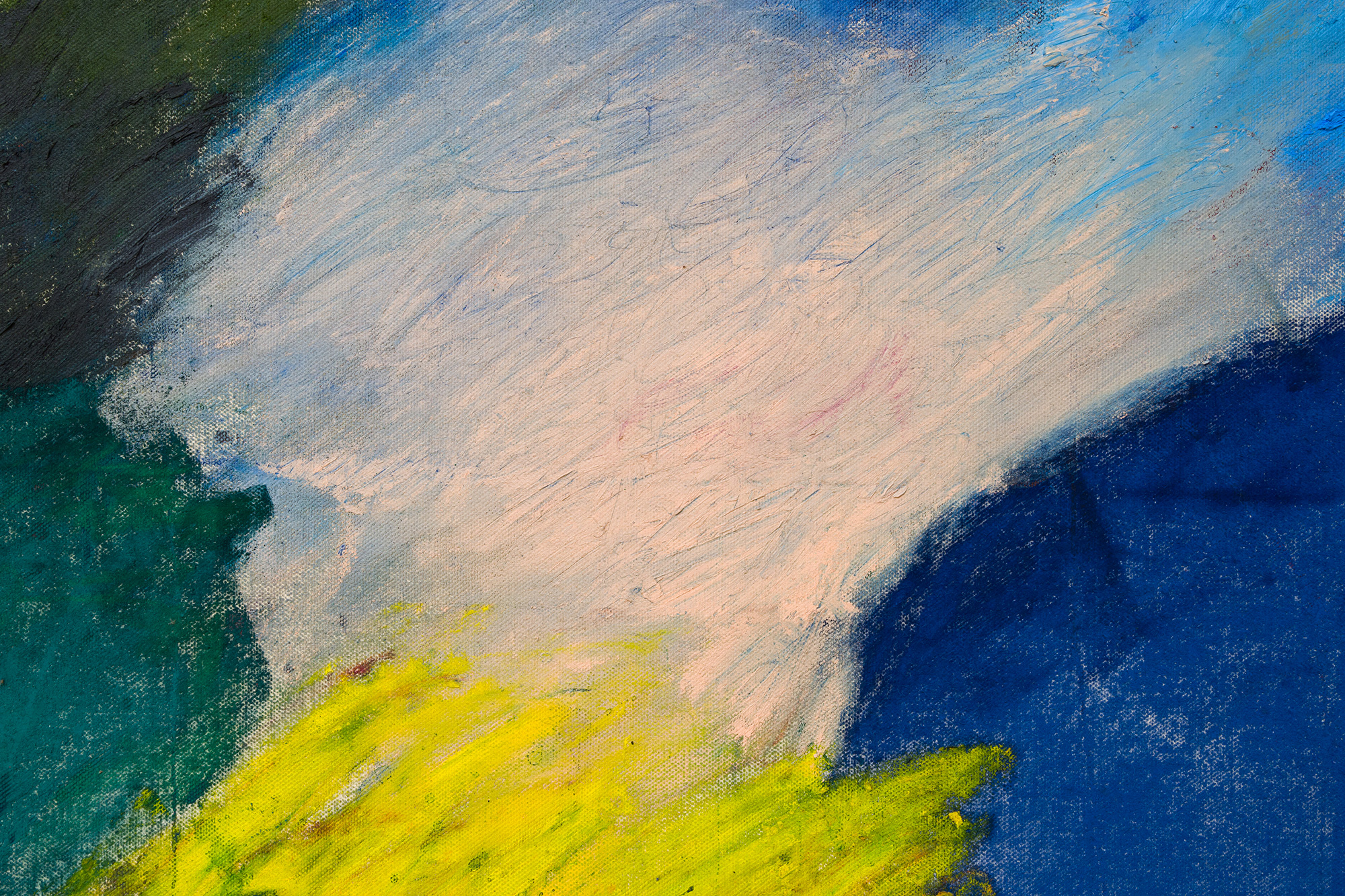 Acrylic, chalk and oil stick on canvas