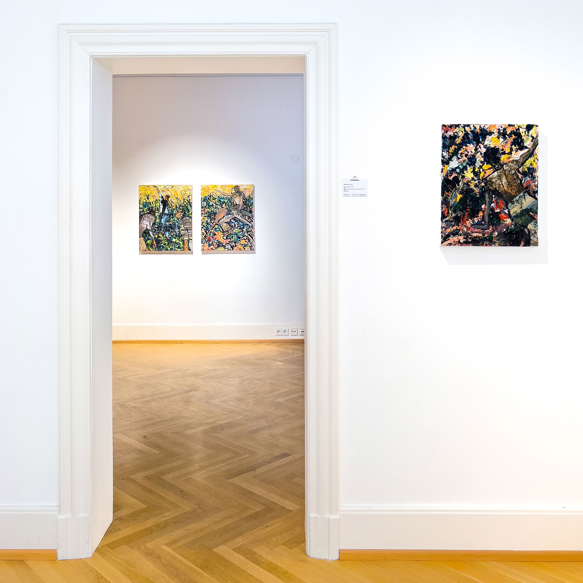 The title "Gravity" harkens to the vortex-like brush strokes in the compositions, with a shared density in their color palette and their motion densely nestled in swirling fields and portal-like floors. In metaphorical uses of the term "gravity," we can imagine different associations to gravitational pulls and its "thingness" which keeps us grounded or anchored to a place, even as we transform over time and move across space. Tied to genealogy and the mapping of genealogical traces, the physical effects of this "binding" or "pulling" intersect the metaphysical with the passing of time where the historical encounters meet the more visceral, immediate and emotive aspects of this enduring attraction to the soil and the ground beneath us.